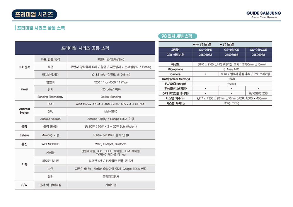 [프리미엄] 전자칠판 98인치 GS-98PE
